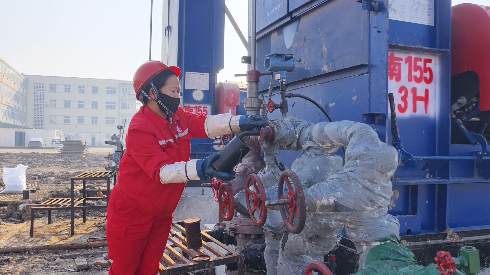 魏2030井需要加注清防蜡剂。她戴好防护口罩,熟练打开套管阀门,精准输入药剂,预防井下管柱结蜡。10时30分,重点井全部跑完,油样送回化验室,她又马不停蹄赶往魏3-1井——监控显示回压升高,她赶到现场,迅速开大掺水冲扫管线,避免堵塞发生。
