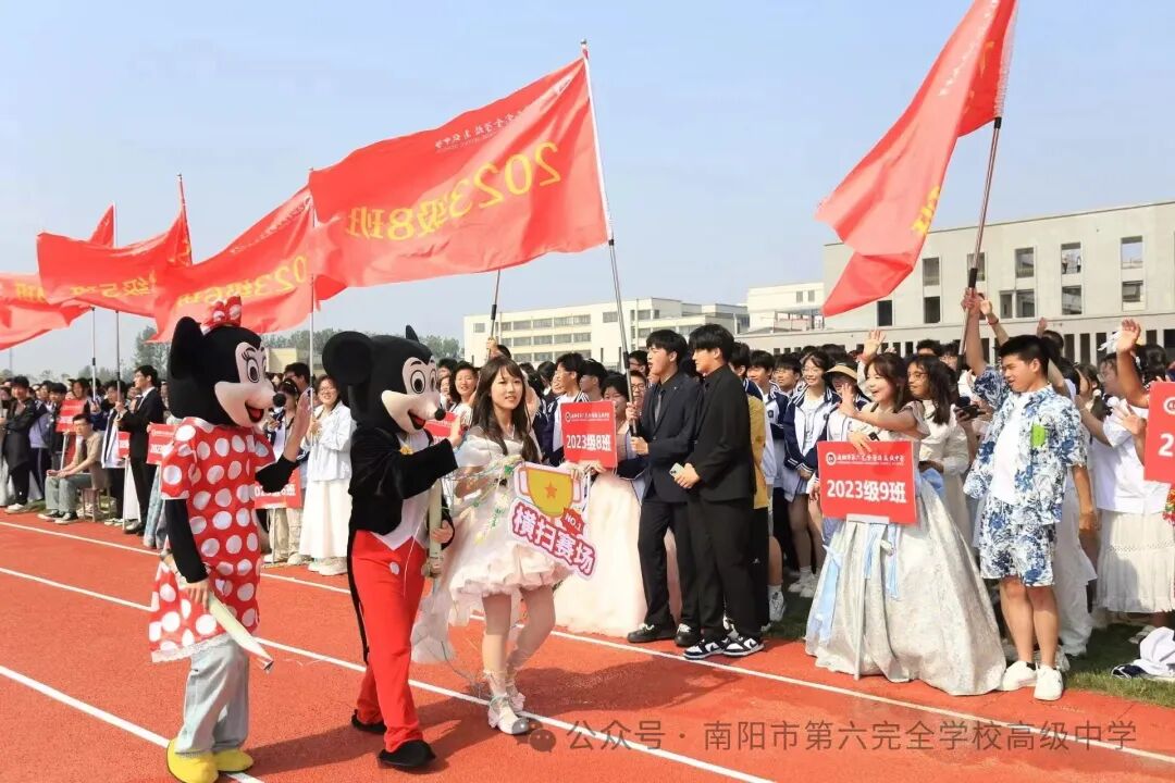 旌旗猎猎,鼓点铿锵!开幕式上,在激昂的《运动员进行曲》中,25个班级方阵依次入场,以独特创意展现青春风采。古典舞韵与现代活力交织,传统文化与科技创意碰撞,口号嘹亮、队形变幻,尽显六全学子的无限创意与蓬勃朝气,赢得全场欢呼。各班方阵以创意为笔、以热情为墨,绘就一幅幅青春画卷!