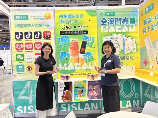 展会上,西施兰药业展出的多款明星产品如西施露腋香净味喷雾、莹润保湿面膜等,凭借温和高效的配方与多年积累的市场口碑,吸引了大量全球客商与消费者驻足咨询。值得注意的是,西施兰药业与金蒔有限公司联合推出的两款新品“「澳门制造」--艾橙按摩精油、艾姜按摩精油”也在此次展会上完成了首次亮相。两款产品均以国家地理标志产品 "南阳艾" 为核心原料,添加了香橙、姜黄精油,能够有效舒缓情绪与缓解肌肉疲劳。