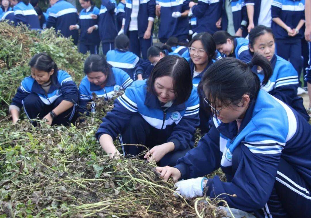秋阳和煦,硕果飘香。10月30日中午,南阳市第十完全学校高中部的后稷果蔬园内一片欢声笑语,高一、高二的同学们化身 “劳动小能手”,有条不紊地开展花生采摘活动,用双手收获四个月前播种的喜悦。