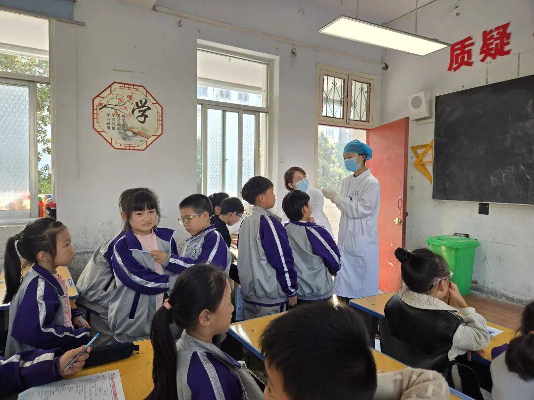活动现场,市口腔医院28名医护人员两人一组分别走进教室,化身“健康导师”,通过趣味问答、牙齿模型实操,讲解龋齿、乳牙滞留、牙外伤、牙列不齐等儿童口腔常见问题,示范巴氏刷牙法以及日常口腔保健方法,指导学生现场练习,确保护牙方法入脑入心。
