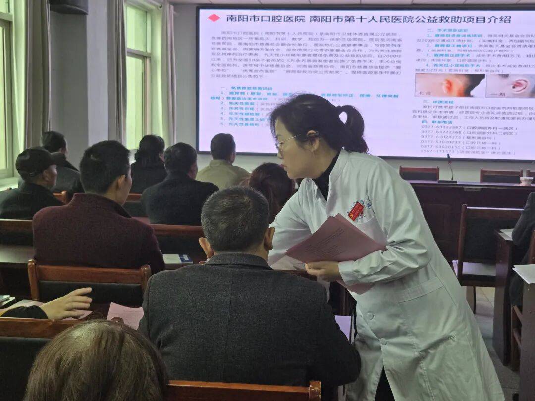 11月6日,南阳市口腔医院(南阳市第十人民医院)组织口腔、眼科、耳鼻喉科、外科多学科专家团队,走进镇平县卫生学校,开展“健康南阳行 大医献爱心”文明实践志愿服务活动。此次活动由南阳市卫健体委主办,镇平县卫健委、镇平县卫生学校协办,旨在通过专业培训赋能乡村医生,筑牢农村医疗卫生“第一道防线”。