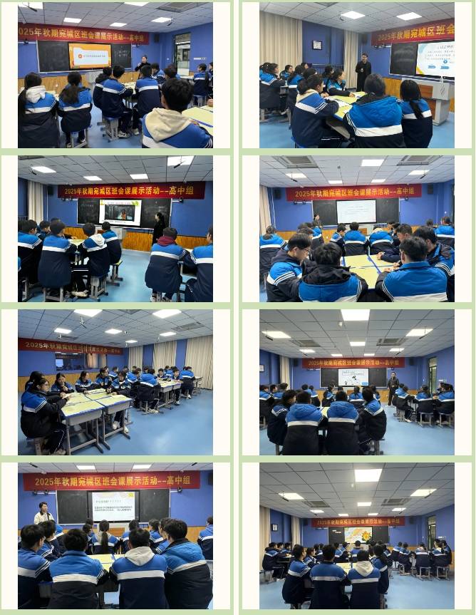 此次宛城区班主任班会课展示不仅是对全区高中班主任德育教学能力的一次集中检阅,更是我校德育工作成果的一次生动展示。活动的成功举办,既为我校德育工作积累了宝贵经验,也为今后进一步创新德育课堂形式、深化民族精神教育提供了新思路。未来,我校将以此次活动为契机,持续深耕德育阵地,不断提升班主任育人能力,为培养担当民族复兴大任的时代新人筑牢思想根基。