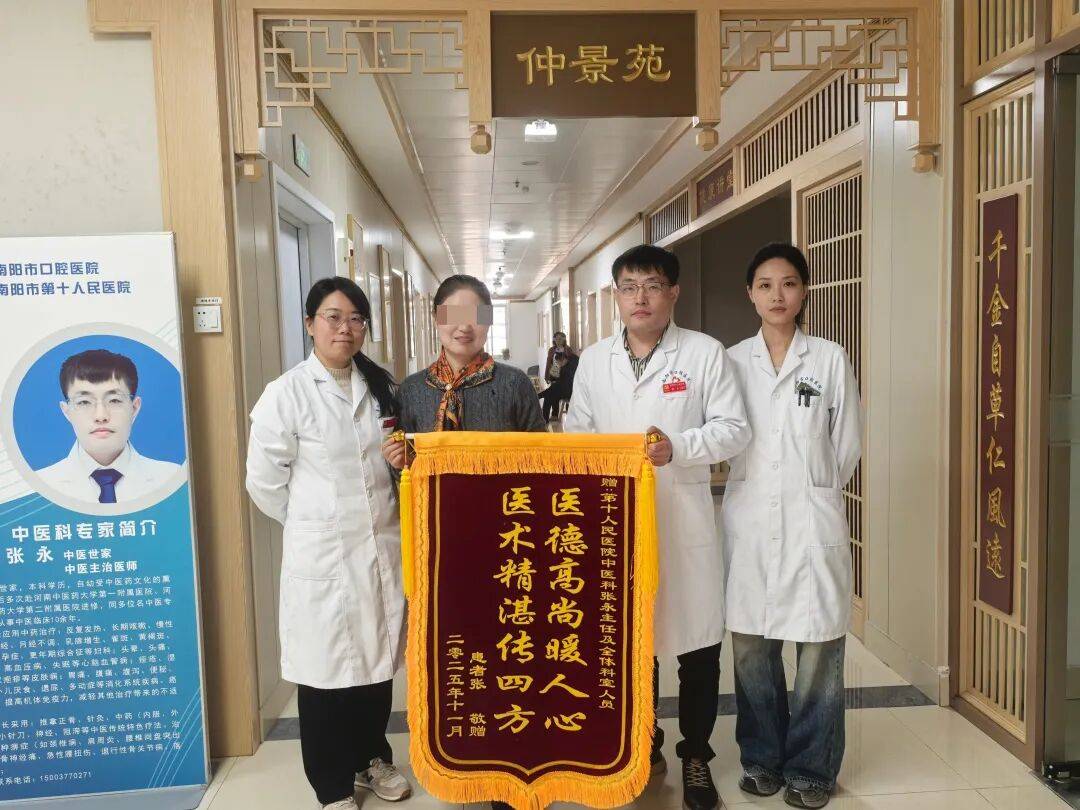 一面锦旗,一份认可;一声赞誉,一份责任。南阳市口腔医院(南阳市第十人民医院)中医科始终秉持 “以患者为中心” 的服务理念,将传统中医理论与临床实践相结合,为患者提供精准、高效的诊疗服务。今后,中医科将持续深耕中医特色诊疗,不断提升医疗服务质量,以更精湛的医术、更贴心的服务回馈广大患者的信任与支持。