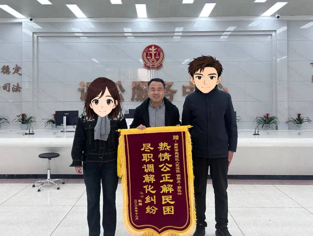 调解成功后,原、被告双方均对宛城区法院先行调解机制的高效便捷和郭俊岭调解员的专业素养赞不绝口。为表达感激,双方分别制作了锦旗送到郭俊岭手中,并表示通过先行调解既省时又省力,帮双方解决了这个头疼的“大麻烦”。