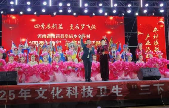 为丰富基层群众精神文化生活,展现乡村振兴的丰硕成果,12月23日,以“四季展新篇 皇后梦飞扬”为主题的河南省南召县皇后乡辛庄村“四季村晚”示范展示活动热闹开演。此次活动由南召县文化广电和旅游局、皇后乡人民政府主办,皇后乡文化合作社、南召县文化艺术发展中心、南召县图书馆、南召县文化馆联合承办,为现场600多名群众带来了一场独具乡土风情的文化盛宴。