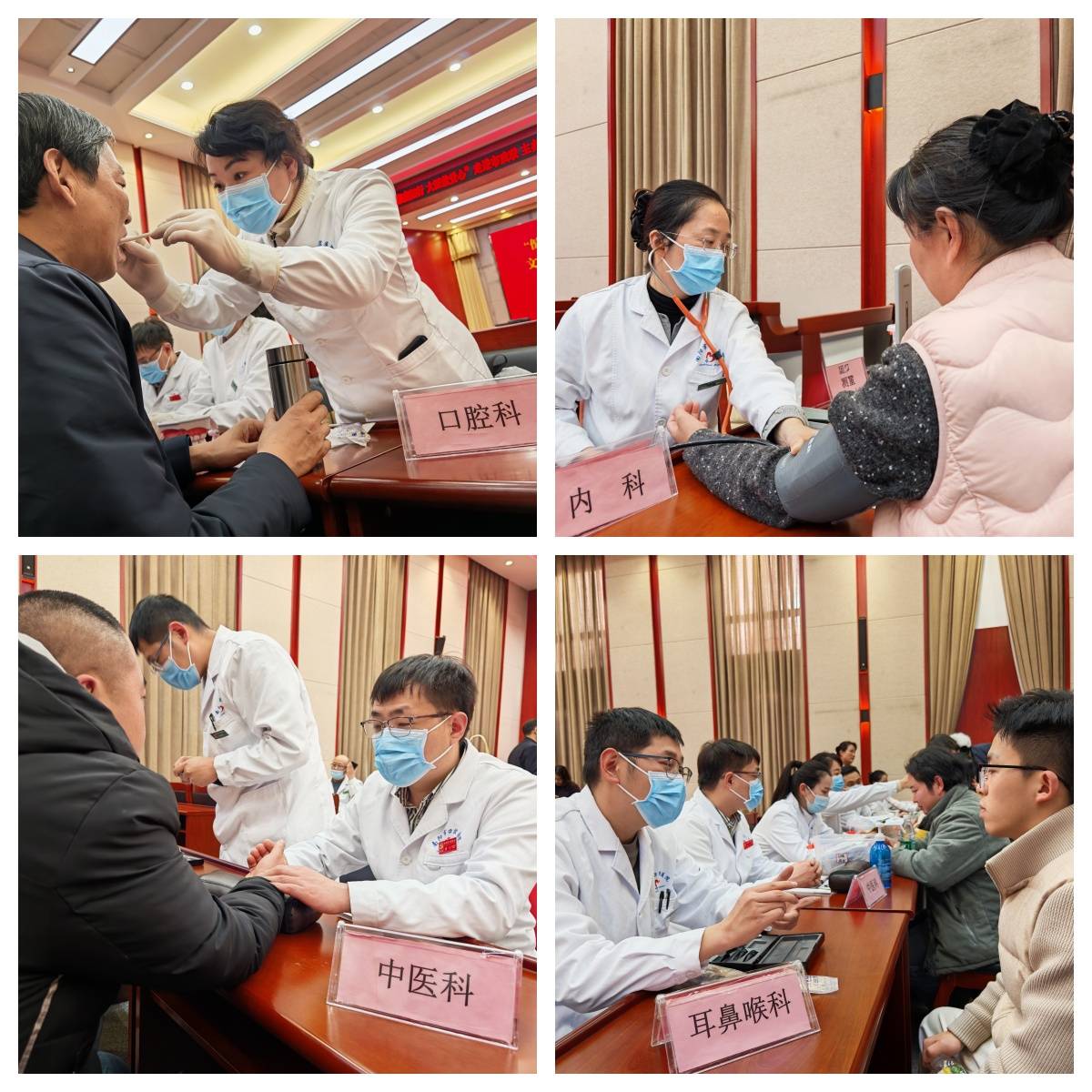 讲座结束后,由口腔、眼科、耳鼻喉、内科、中医等多科室专家组成的义诊团队,为大家提供了免费的健康检查和咨询服务。除了口腔检查、视力检测、血压血糖测量等基础项目,还特别设置了中医把脉、颈肩腰腿疼痛治疗等特色服务。