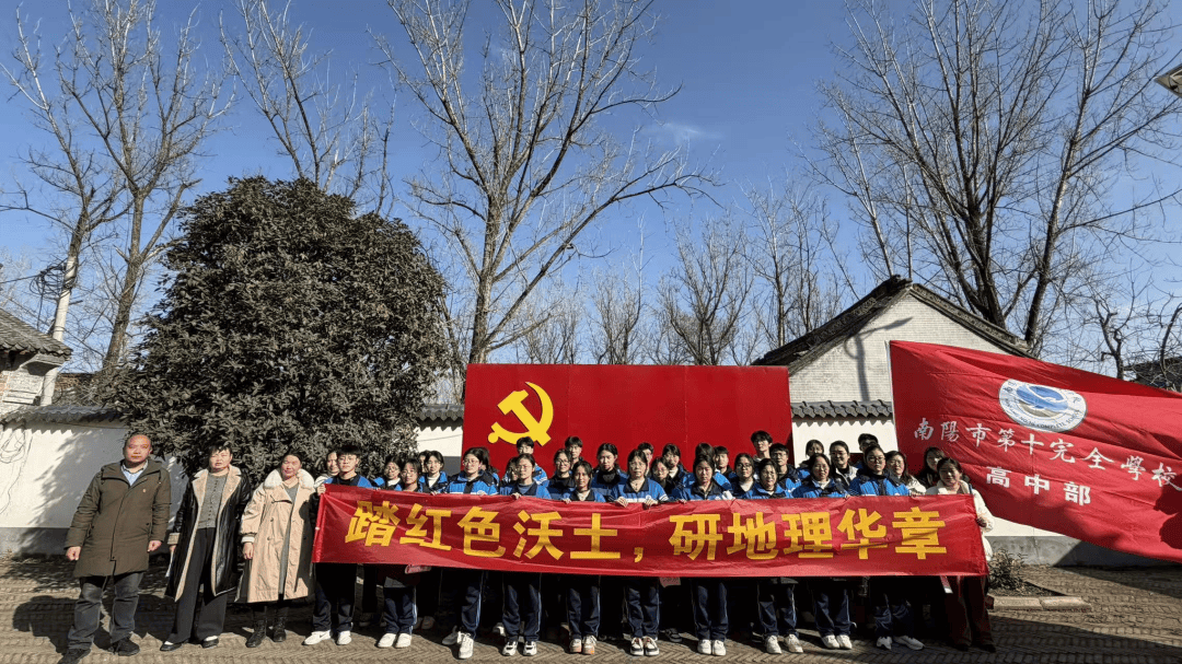 2026年1月15日,阳光洒满宛城大地,南阳市第十完全学校高中部11名地理教师带领31名高二文科生,赴中共南阳第一支部旧址开展红色研学活动。这场集党史学习、乡村观察与知识实践于一体的研学之旅,让青年学子在行走中感悟初心,在实践中传承精神。