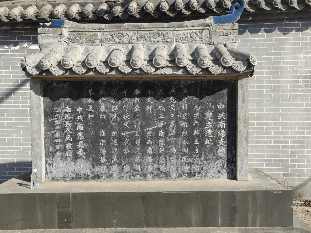 抵达宛城区黄台岗镇刘宋营村,中共南阳第一支部旧址的红色气息扑面而来。在黄台岗镇文化站黄站长安排的讲解员引领下,师生们首先走进红色文化长廊。廊间,形似旗帜与火焰的黄色大理石上,“星火燎原”四个遒劲大字格外醒目,象征着南阳革命的火种自此燃起。讲解员详细讲述了1926年中共南阳支部成立的历史背景——在周恩来同志具体指示下,杨士颖、刘友三、朱冠洲等共产党人返乡秘密工作,最终选择群众基础好、反动统治薄弱的刘宋营村建立支部,以打牌为掩护召开会议、学习《共产党宣言》的峥嵘往事。