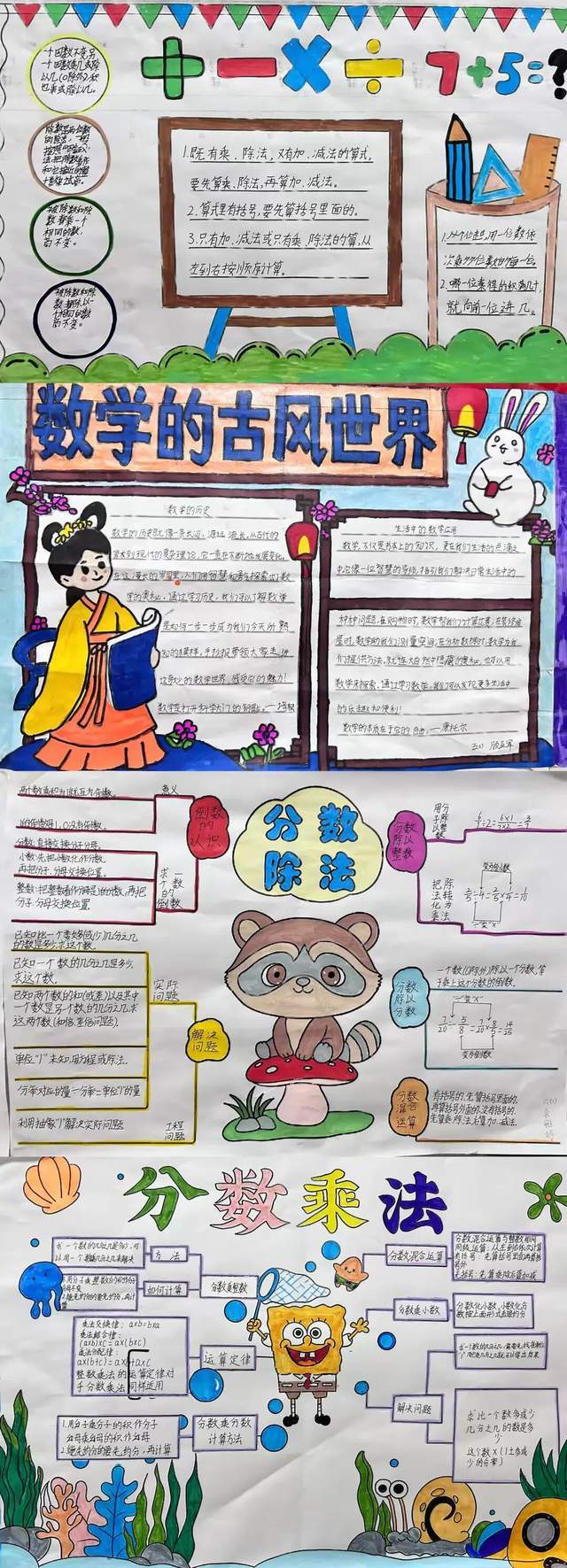 数学特色作业各年级学生结合所学知识,发挥奇思妙想,创作出一份份精彩纷呈的作业,将抽象的数学知识与生动的艺术创作、生活实践深度融合,充分展现了数学的趣味性、实用性和美学价值。