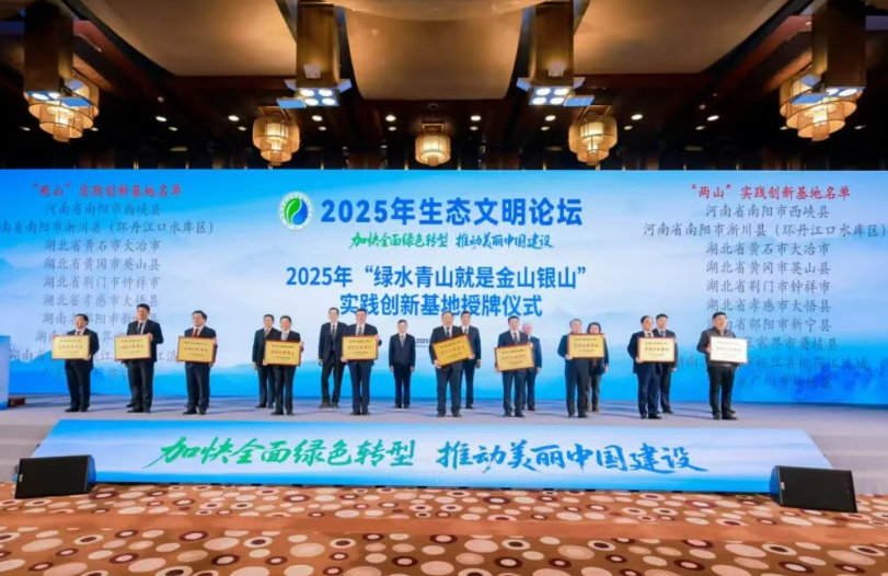 12月24至25日,由中国生态文明研究与促进会主办的“2025年生态文明论坛”在北京隆重召开。生态环境部部长黄润秋出席主题论坛并致辞。在主题论坛上,举行了生态文明建设示范区及“绿水青山就是金山银山”实践创新基地授牌仪式。我市内乡县获授“生态文明建设示范区”称号,西峡县、淅川县(环丹江口水库区)荣膺“绿水青山就是金山银山”实践创新基地称号。淅川县,西峡县在相关论坛上作经验交流发言。