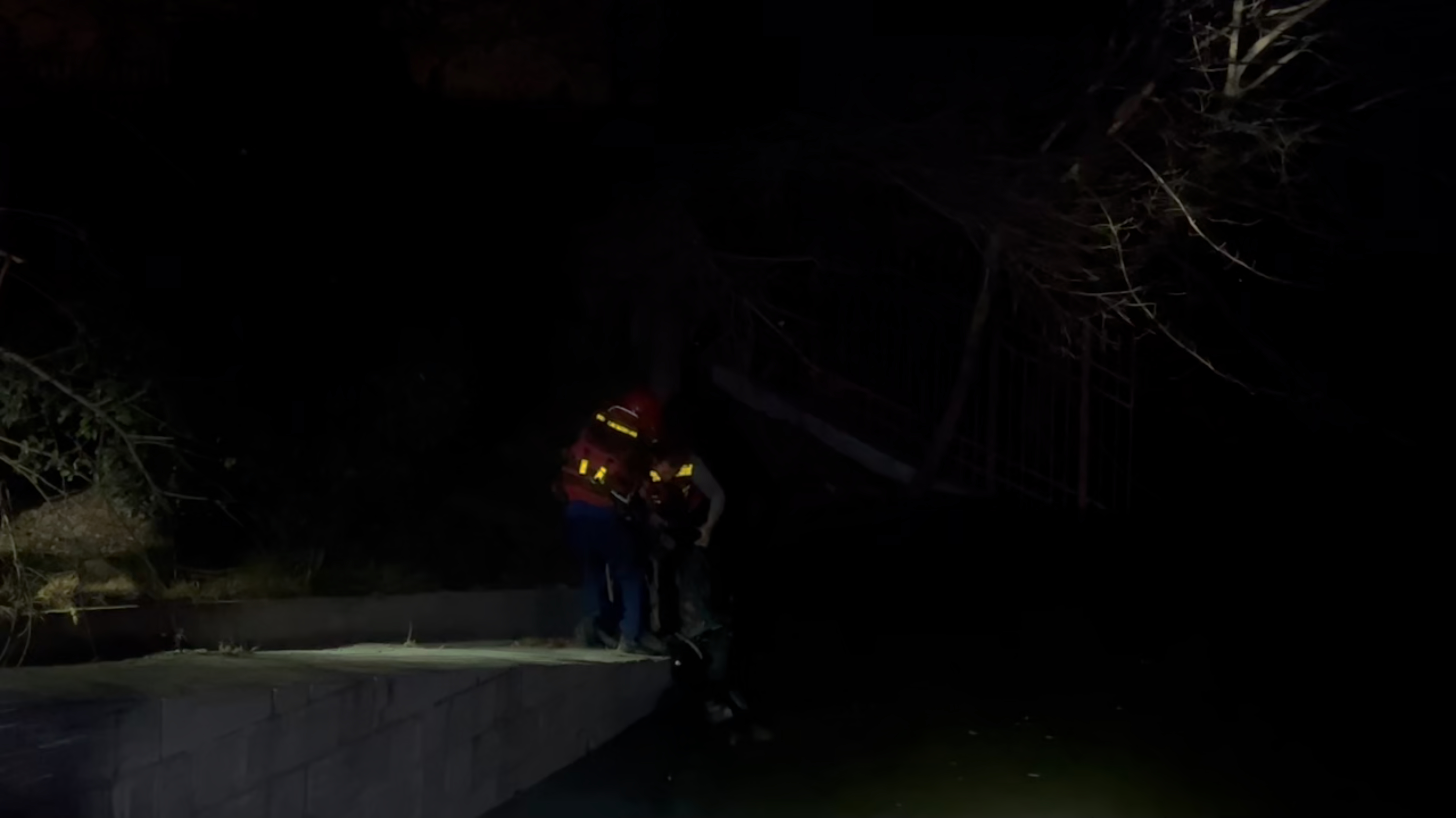 1月18日凌晨05时31分,南阳医圣祠门口东侧发生惊险一幕,一名女子不慎落水。千钧一发之际,两名热心群众毫不犹豫地伸出援手,一名群众毅然跳入水中紧紧拉住落水者,另一名群众则在岸上迅速找来绳子,紧紧拉住两人,防止落水者下沉。