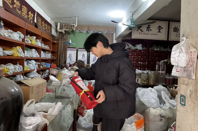 针对辖区医药、艾制品等特色业态的消防安全特殊性,在排查过程中,工作人员还坚持“检查 + 宣传”同步推进,用通俗易懂的语言向商户讲解冬季火灾危害、火灾报警流程、初期火灾扑救方法及逃生自救技巧,手把手指导商户正确使用灭火器,引导商户主动开展自查自纠。并重点解读相关商品的防火、防潮、储存规范及应急处置要点,切实提升商户的安全防范意识与应急处置能力,营造出了“人人讲安全、事事为安全、时时想安全、户户保平安”的浓厚氛围。