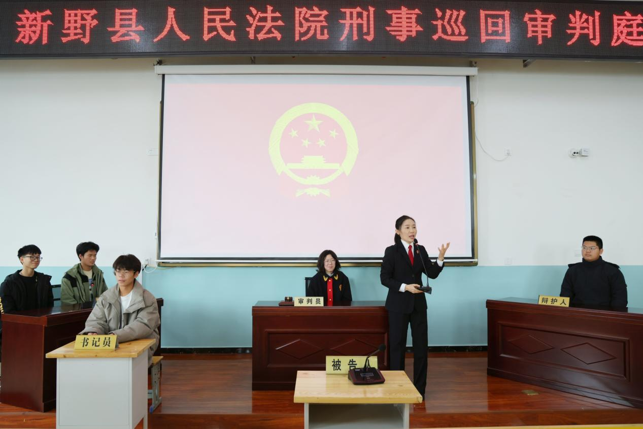 “现在开庭!”10月28日,随着清脆的法槌声响起,一场特殊的庭审在新野县春晖中等职业学校阶梯教室拉开帷幕,百余名师生端坐观摩席,目光聚焦在国徽下庄严的审判席。为增强青少年法治意识,从源头预防和减少未成年人违法犯罪,河南省新野县人民法院刑事审判庭将真实案件审理搬进校园,为师生们上了一堂生动的法治公开课。