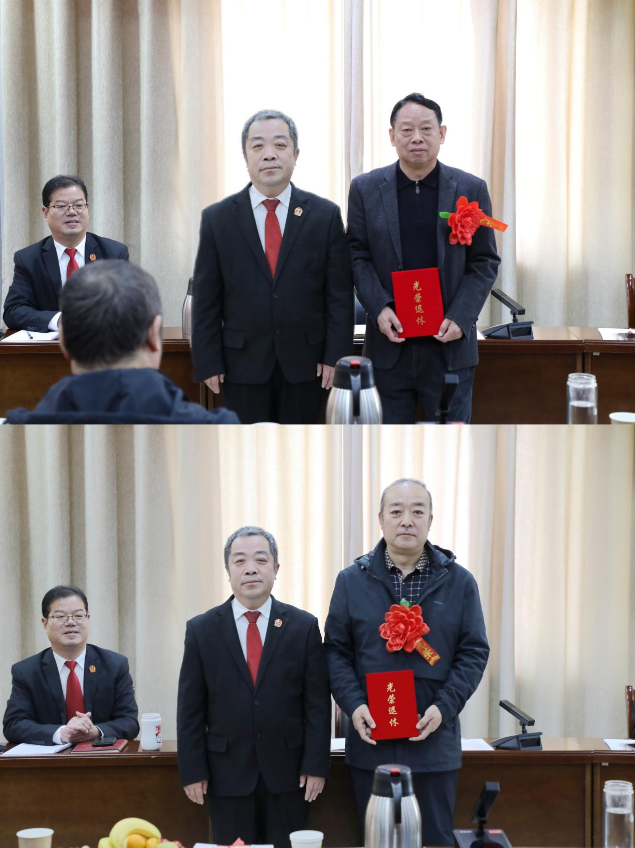 参观结束后,新野县法院召开了干警荣誉退休仪式暨老干部重阳节座谈会,院党组成员、副院长魏少永通报了2024年重阳节以来退休人员和新野县法院2024年以来的工作情况,院党组副书记、副院长王永清为2024年重阳节以来退休人员颁发荣誉退休证。证书颁发后,退休干部代表宋俊波、王利建,中层代表刑庭副庭长赵钦分别作交流发言。