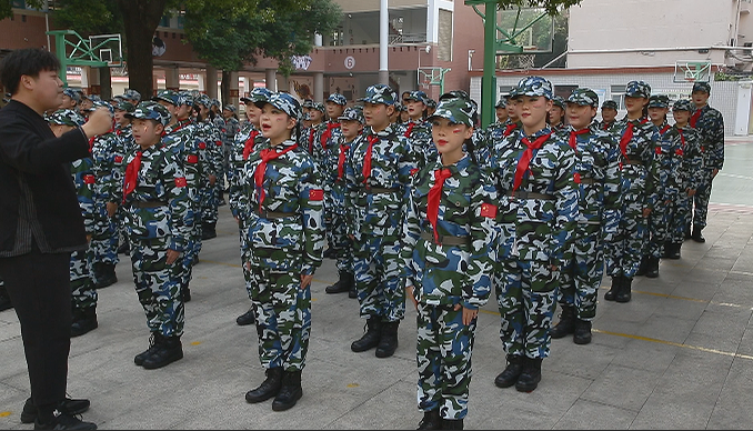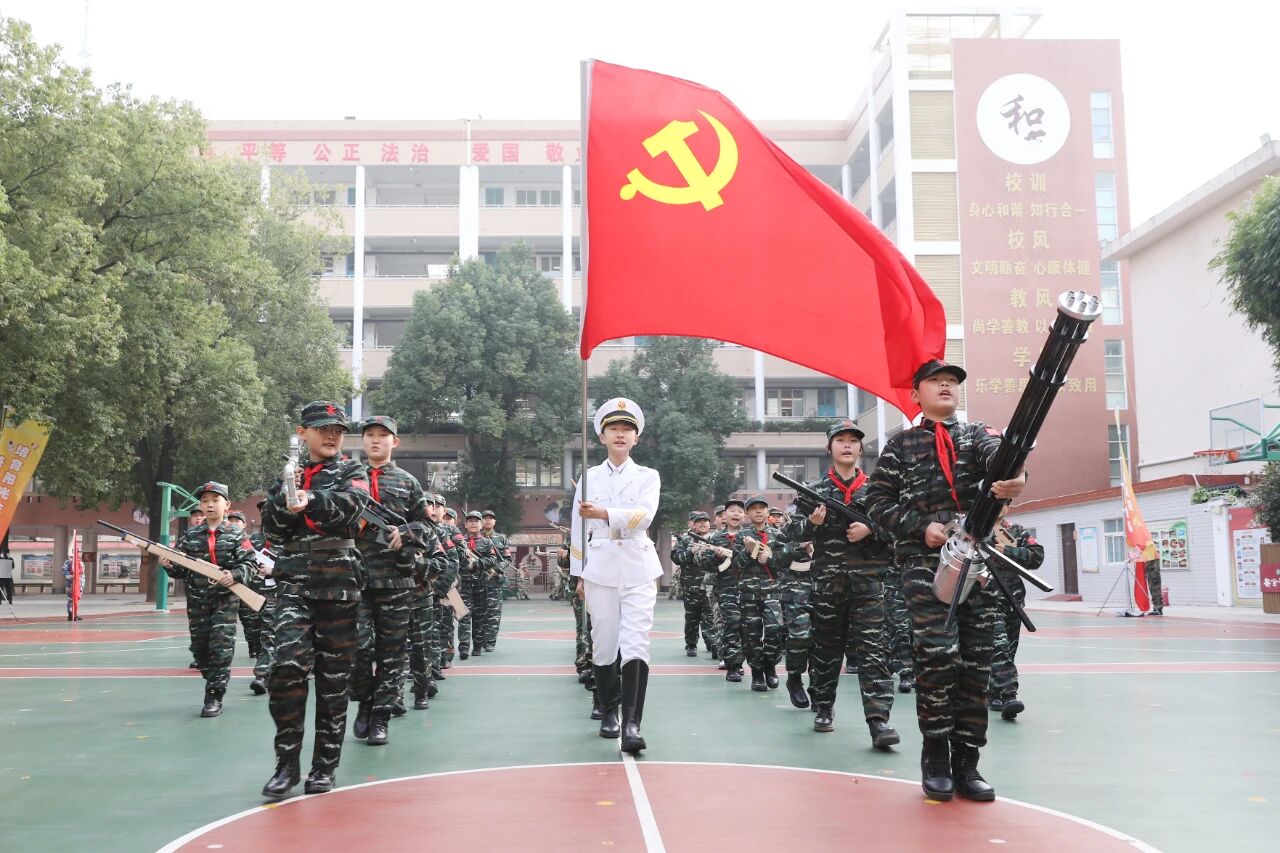 随后的项目化学习成果展示环节更是精彩纷呈。首先进行了气势恢宏的军歌展示,学生以班级为单位依次登台,军歌响彻校园,歌声铿锵有力,尽显少年朝气;紧接着亮相的是学生队列方阵,同学们身着统一服装,步伐整齐划一,口号响彻云霄,充分展现了“和美少年”严谨的纪律作风和蓬勃向上的精神风貌。