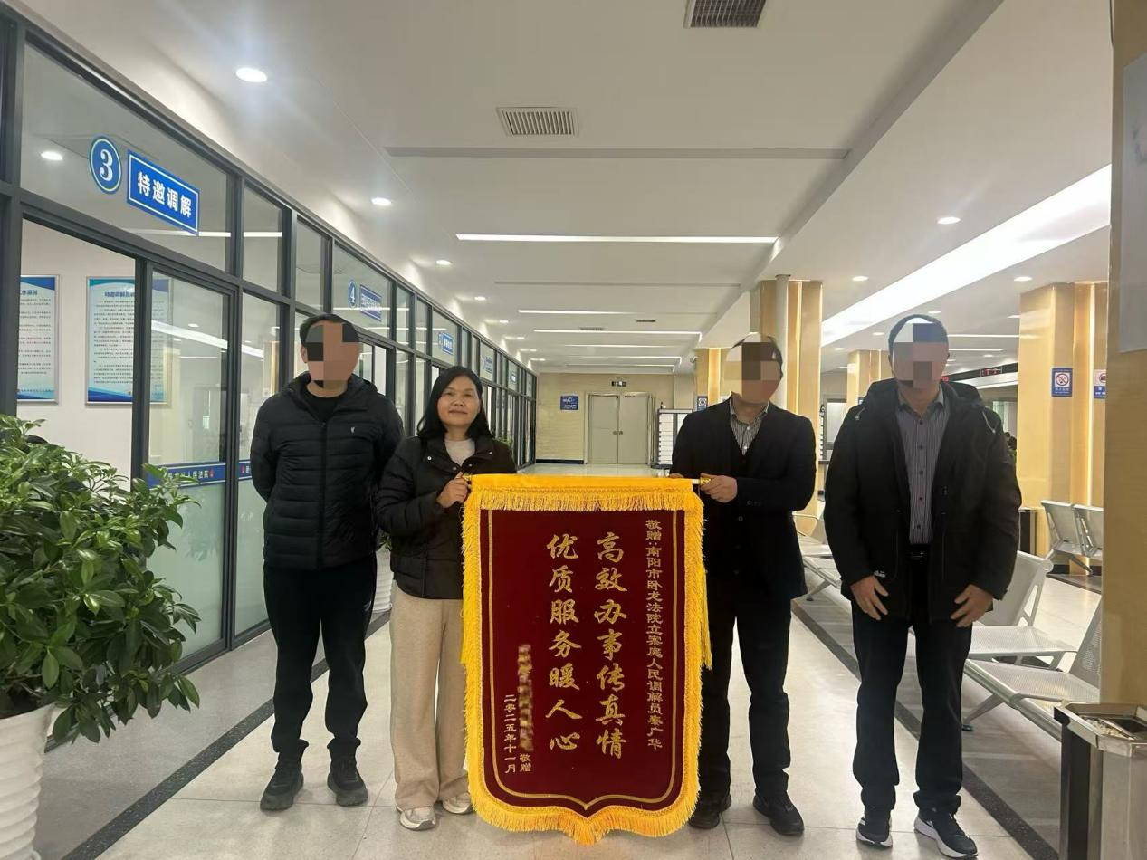 11月28日,南阳市卧龙区人民法院立案庭收到一面印有“高效办事传真情 优质服务暖人心”的锦旗,表达了当事人对调解员快速、高效、柔性的司法服务的由衷感谢。