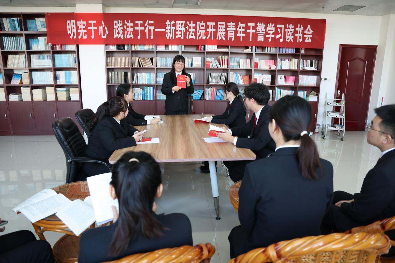 习近平总书记强调,“向书本学习,是丰富知识、增长才干的重要途径。”宪法作为国家的根本大法,是司法工作的根本遵循。为深入推进宪法宣传周活动,厚植“爱读书、善学习、守法治”的浓厚氛围,12月2日,河南省新野县人民法院开展由团支部牵头组织的“明宪于心 践法于行”青年干警学习读书会活动。青年干警代表们齐聚一堂,共赴书香与法韵的思想盛宴。