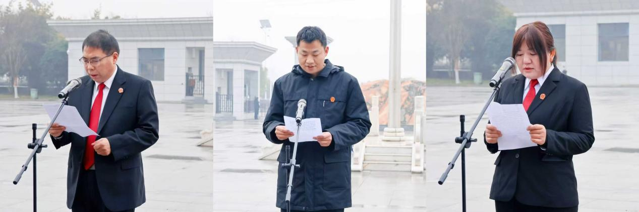 升旗仪式后,三名干警代表依次发言。他们结合审判执行、司法服务、队伍建设等岗位实际,分享了过去一年的工作心得与成果,明确了新一年的目标与举措。发言中,既有对群众急难愁盼问题的关切,也有对提升办案质效、优化司法服务的思考;既有对初心使命的坚守,也有对服务地方高质量发展的决心。真挚的话语、务实的表态,引发了在场干警的强烈共鸣。