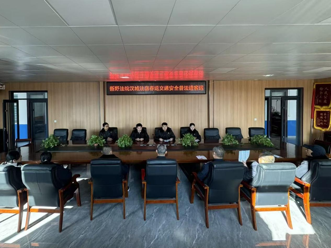 为营造安全、有序的春运道路交通环境,强化运输企业及其从业人员的法律意识和安全责任,从源头预防和减少道路交通事故,2026年2月4日,河南省新野县人民法院汉城人民法庭道交团队法官主动延伸司法职能,走进新野县第一汽车运输公司,开展交通运输安全普法宣传讲座。