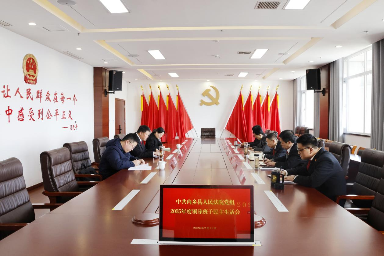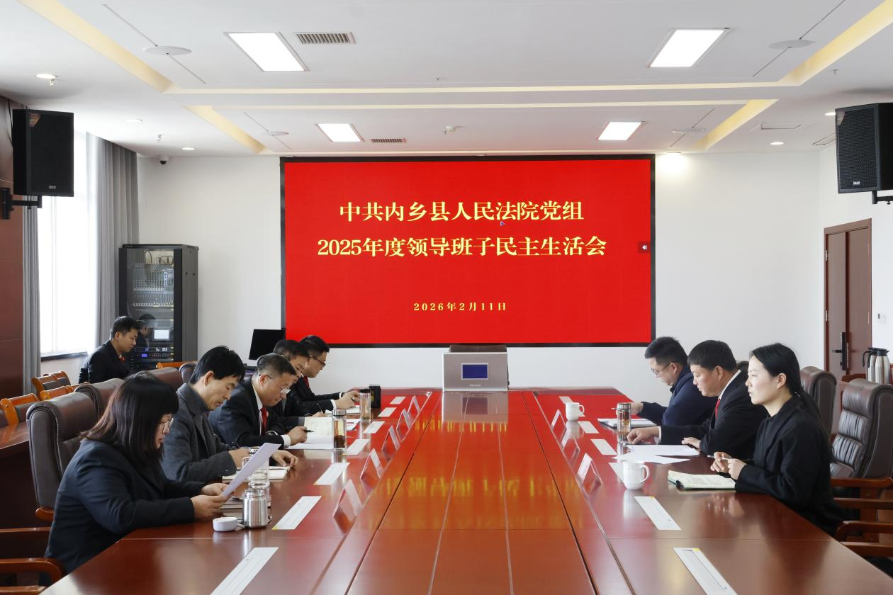 2月11日,内乡县人民法院党组召开2025年度民主生活会,党组书记、院长刘子国主持会议并总结讲话,全体党组成员参加会议。县组织部研究室负责人、党员教育中心主任李文杰、县纪委监委干部监督室副主任曹鑫到会指导。