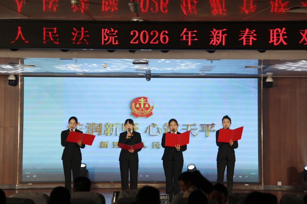 金蛇摆尾辞旧岁,玉马昂首迎新春。为丰富干警精神文化生活,展现法院队伍昂扬奋进的精神风貌,进一步增强集体凝聚力和向心力,2026年2月12日下午,河南省新野县人民法院举办2026年新春联欢会。全院干警、离退休老同志及干警家属欢聚一堂,喜迎新春。