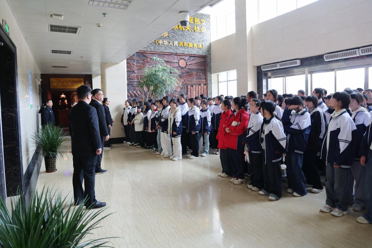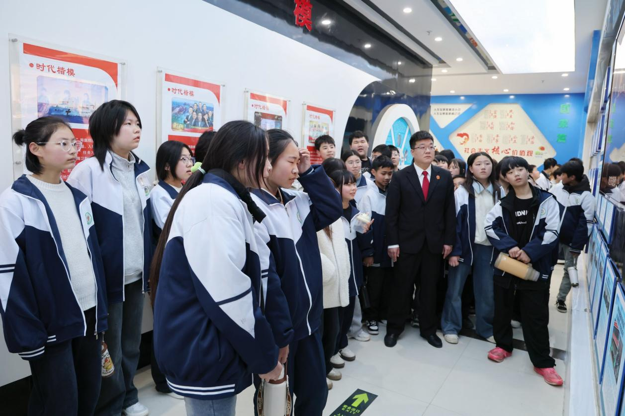 活动中,在讲解员的引导下,同学们先后参观了法治文化展馆、青少年法治教育中心、法院院史馆等场所,带领同学们回顾中国法治文明的发展历程,从古代“法”字的演变,到现代司法理念的践行,从法官制服、法槌的象征意义,到未成年人保护相关法律法规的解读,全方位展现了法治建设的辉煌成就与法治文化的深厚底蕴。
