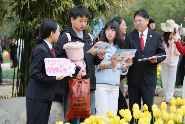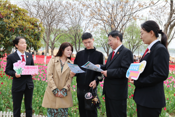 活动现场,法院干警们化身法治宣传员,穿梭在郁金花海、白河风光带、风味小吃街等游客密集区域,为游客和商户发放《游客法律风险防范及维权指南》和消费者权益保护普法宣传单,紧扣文旅场景特点,聚焦游客和经营者最关心的法律问题,重点普及《中华人民共和国民法典》《中华人民共和国消费者权益保护法》《中华人民共和国旅游法》等相关法律法规,用接地气、听得懂的语言,把法律知识送到群众手中、讲到群众心里,让法治春风与春日美景相伴相生。