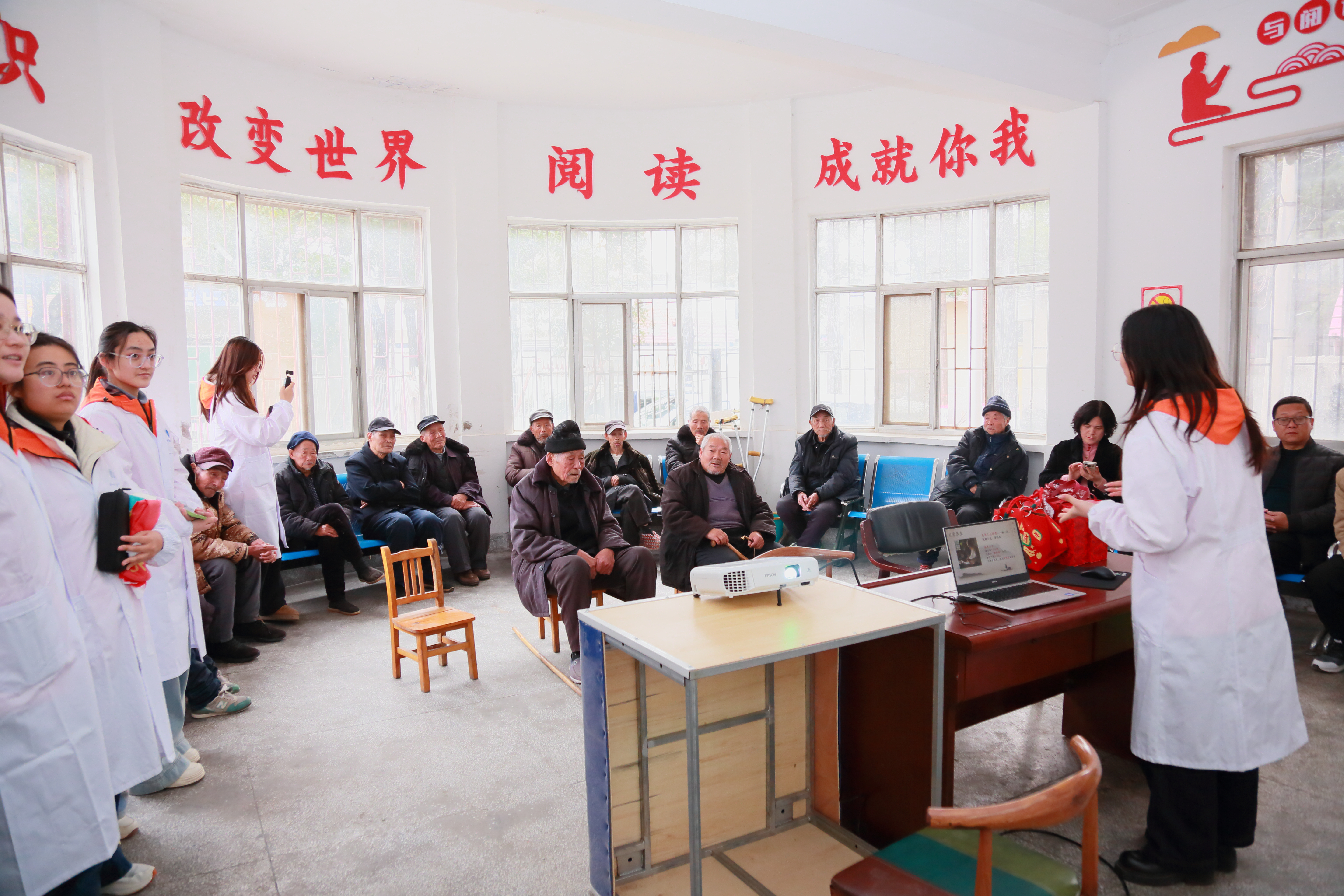 活动现场,师生们迅速搭建起简易诊疗台,有序开展各项服务。中医专业的师生结合老年人常见疾病特点,开展了一场通俗易懂的中医健康讲座,从冬季养生、关节养护、慢病调理等方面入手,用接地气的语言讲解中医食疗、穴位按摩等实用知识,还现场示范了简单易学的保健手法,老人们认真聆听,不时点头附和,主动提问交流,现场氛围十分热烈。