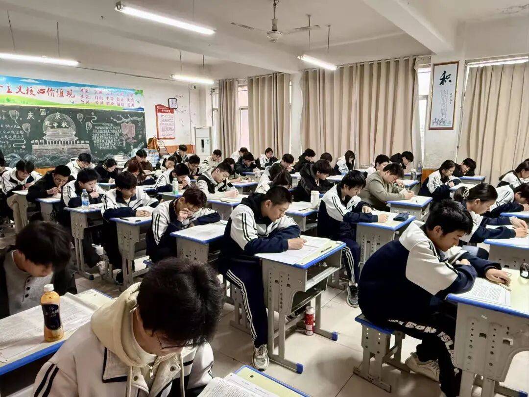 神情专注,心无旁骛。 每一位同学都全神贯注于眼前的试卷,眉头时而紧蹙,时而舒展。目光如炬,紧盯着题目中的每一个关键词,仿佛要将所有的知识从脑海中唤醒。