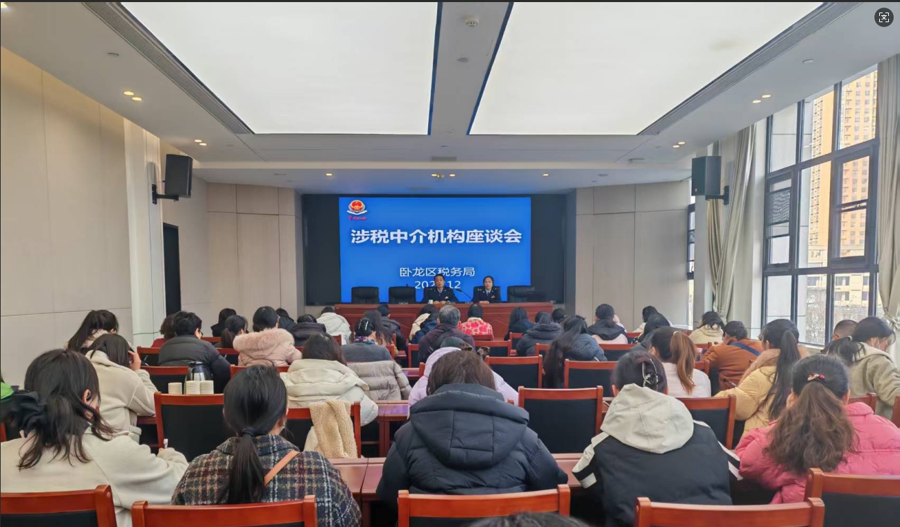 为进一步优化税收营商环境,深化税收征管改革,促进涉税中介行业规范健康发展,12月5日上午,卧龙区税务局在区政务服务中心组织召开了全区涉税中介机构座谈会。全区九十余家涉税中介机构负责人齐聚一堂,共话税收协作,共谋发展良策。会议聚焦中介机构合规经营、办税服务体验提升及日常管理服务优化,开展了深入交流与务实探讨。