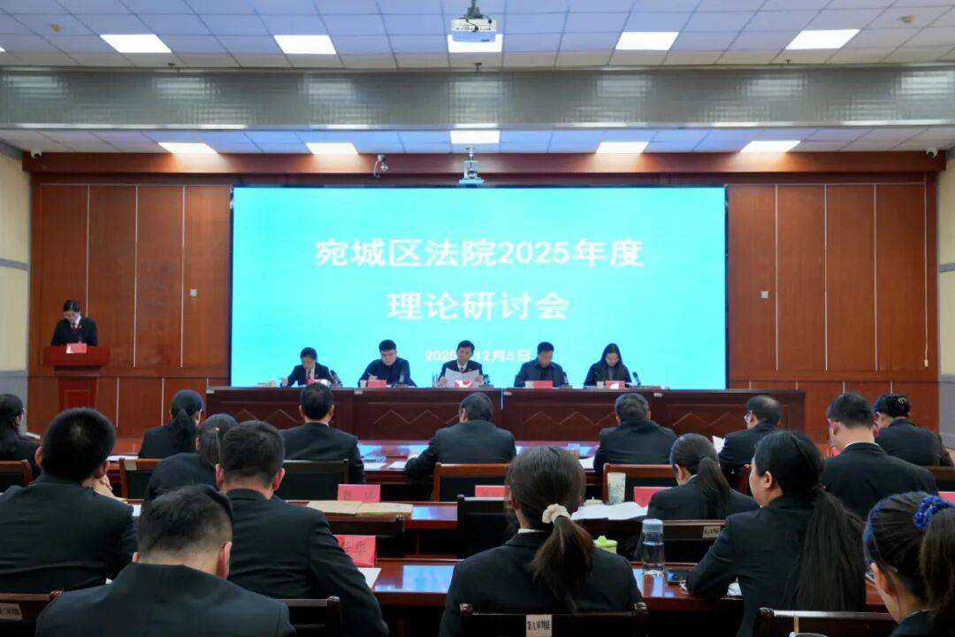 为系统总结年度调研工作成效,持续营造浓厚的调研工作氛围,12月5日,南阳市宛城区人民法院召开2025年度理论研讨会,南阳市中级人民法院研究室主任吴贺明及研究室相关同志应邀到会指导,宛城区法院党组书记、代理院长王立申出席会议并讲话,宛城区法院班子成员、各部门负责人、35周岁以下青年干警参会。