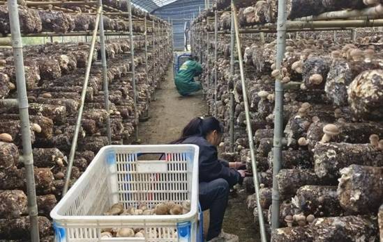 皇后乡分水岭村大庄香菇种植基地工人采摘香菇 摄影:李祖全