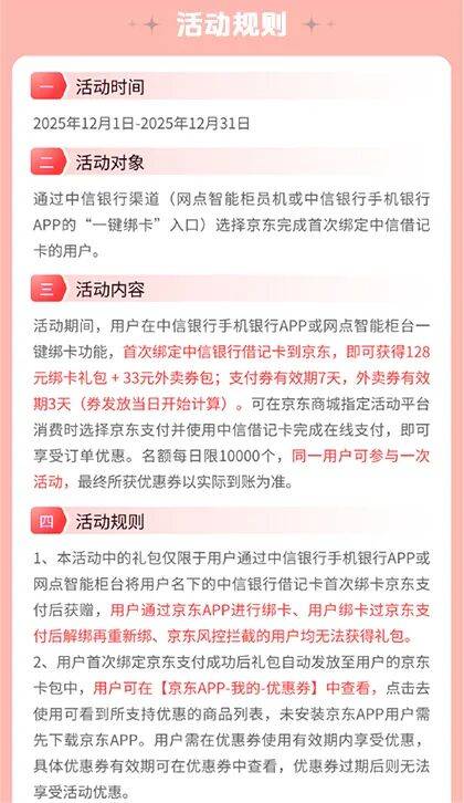 中信银行【专享】一键绑卡京东领161元豪华礼包