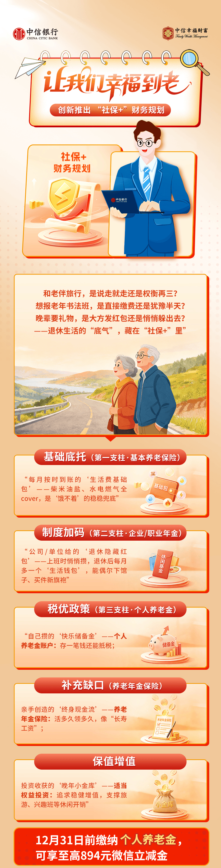 中信银行【养老】让我们幸福到老 创新推出“社保+”财务规划