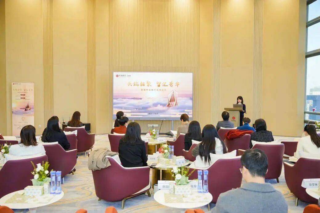 在主题分享环节,杭州分行私人银行部副总经理南海娇致欢迎辞,介绍了杭州分行私人银行中心作为企业家及高端客户“会客厅、会议室、办公室”的多元功能定位,致力于打造资源共享、合作共赢的高端交流平台。