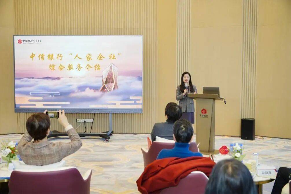 随后,杭州分行私人银行部总行级投资顾问斯梦琳分享了中信银行“人—家—企—社”综合服务体系,围绕个人成长、家庭保障、企业经营与社会责任等方面,为女性企业家提供定制化的综合金融解决方案。