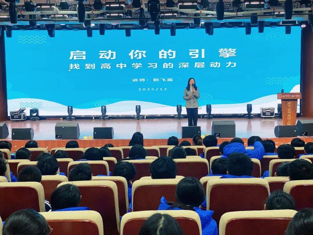 初心点点,心光启程。为引导学生学会心理调适,启动自我引擎,找到高中学习深层动力,保持乐观自信、积极向上的心态,2025年12月18日,南阳市宛城区未成年人心理健康辅导中心走进南阳市第六完全学校高级中学,国家二级心理咨询师、河南省教育厅家庭教育特聘专家郭飞霞老师为高一年级学生带来了《启心中引擎,照未来心光》心理健康讲座。这场点亮学习初心的温暖对话在学校报告厅徐徐开启。