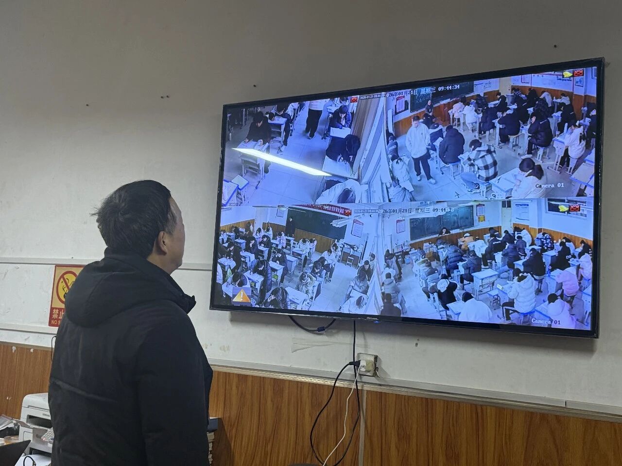 主监控室内,四大屏实时显示着所有考场的画面。视频监考员全神贯注地盯着屏幕,不时切换视角、放大局部,不放过任何异常情况。视频监控系统实现了全程录像、实时回放,形成了“现场监考+视频监考”的双重保障体系。