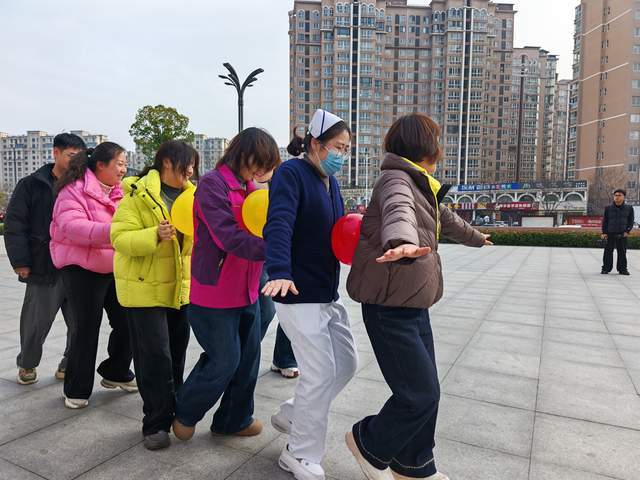 猜灯谜活动结束后,热闹的趣味文体活动在门诊楼前广场正式拉开帷幕。接力运元宵、趣味夹球跑、趣味踩气球三项游戏轮番上阵,将节日氛围推向高潮。