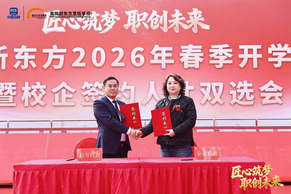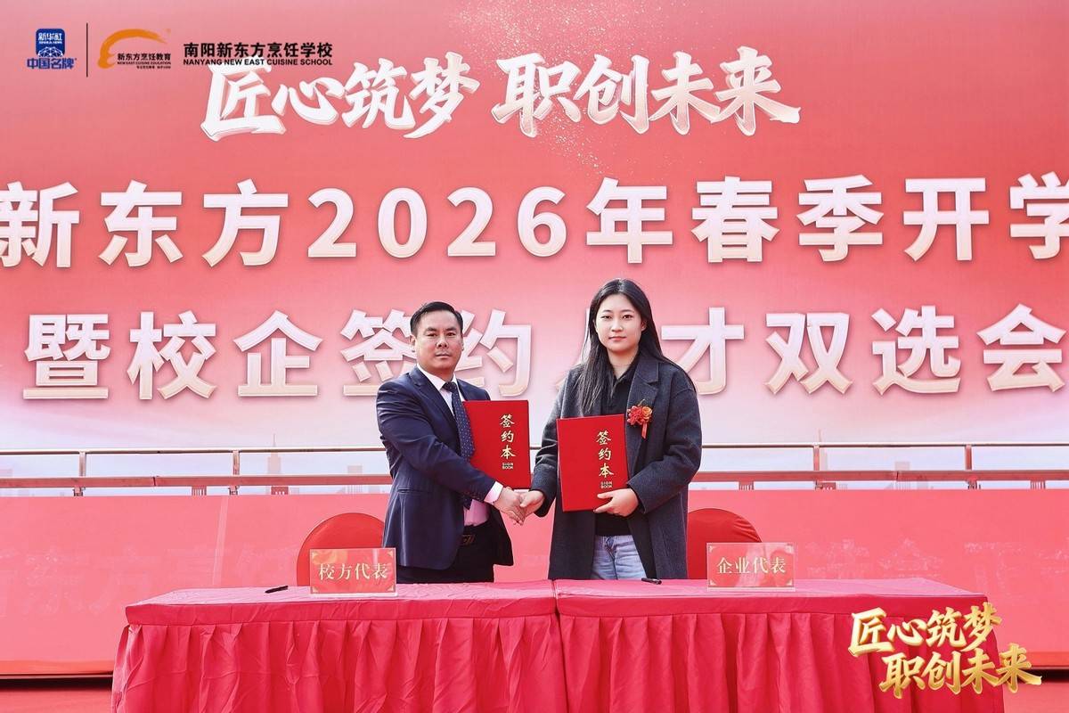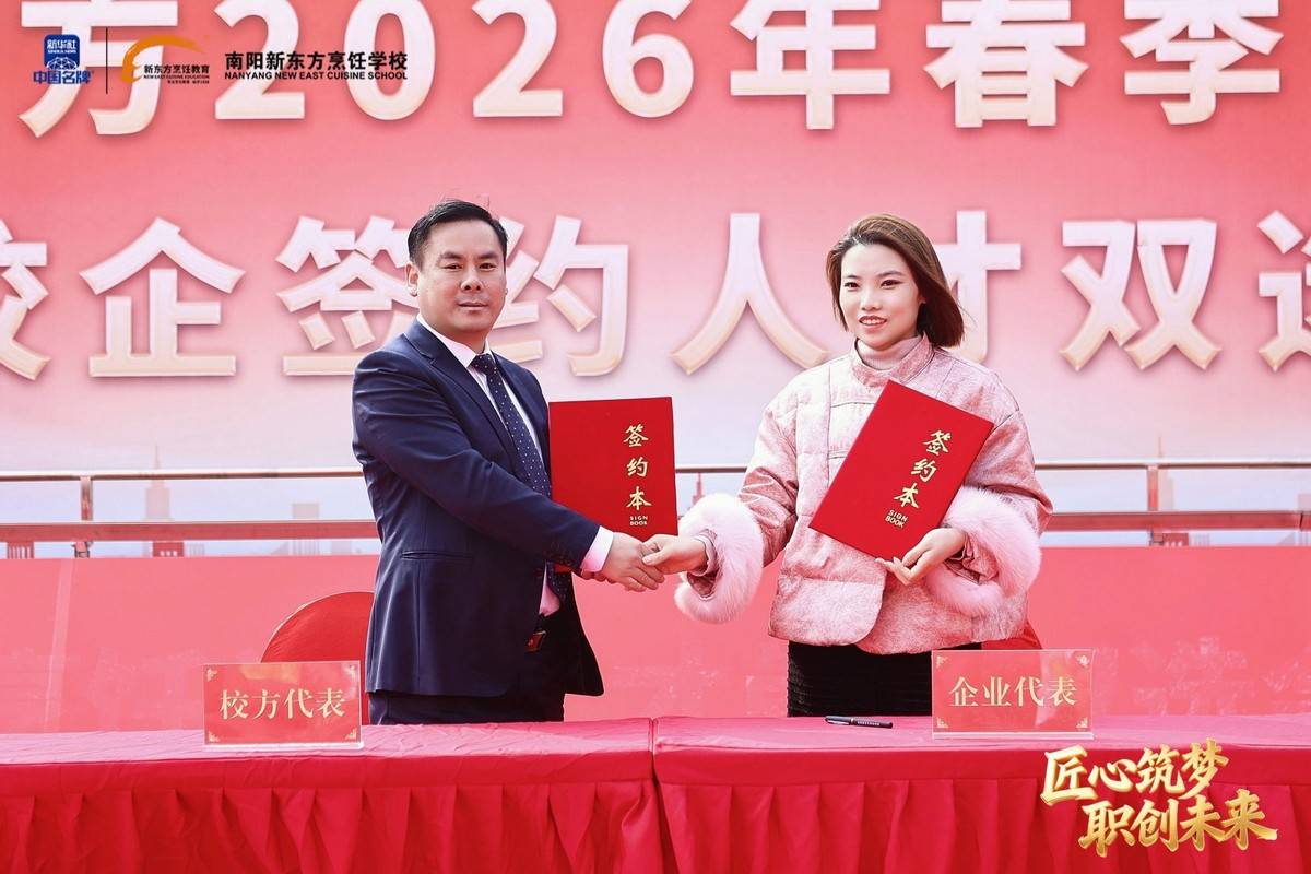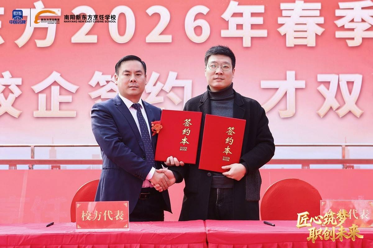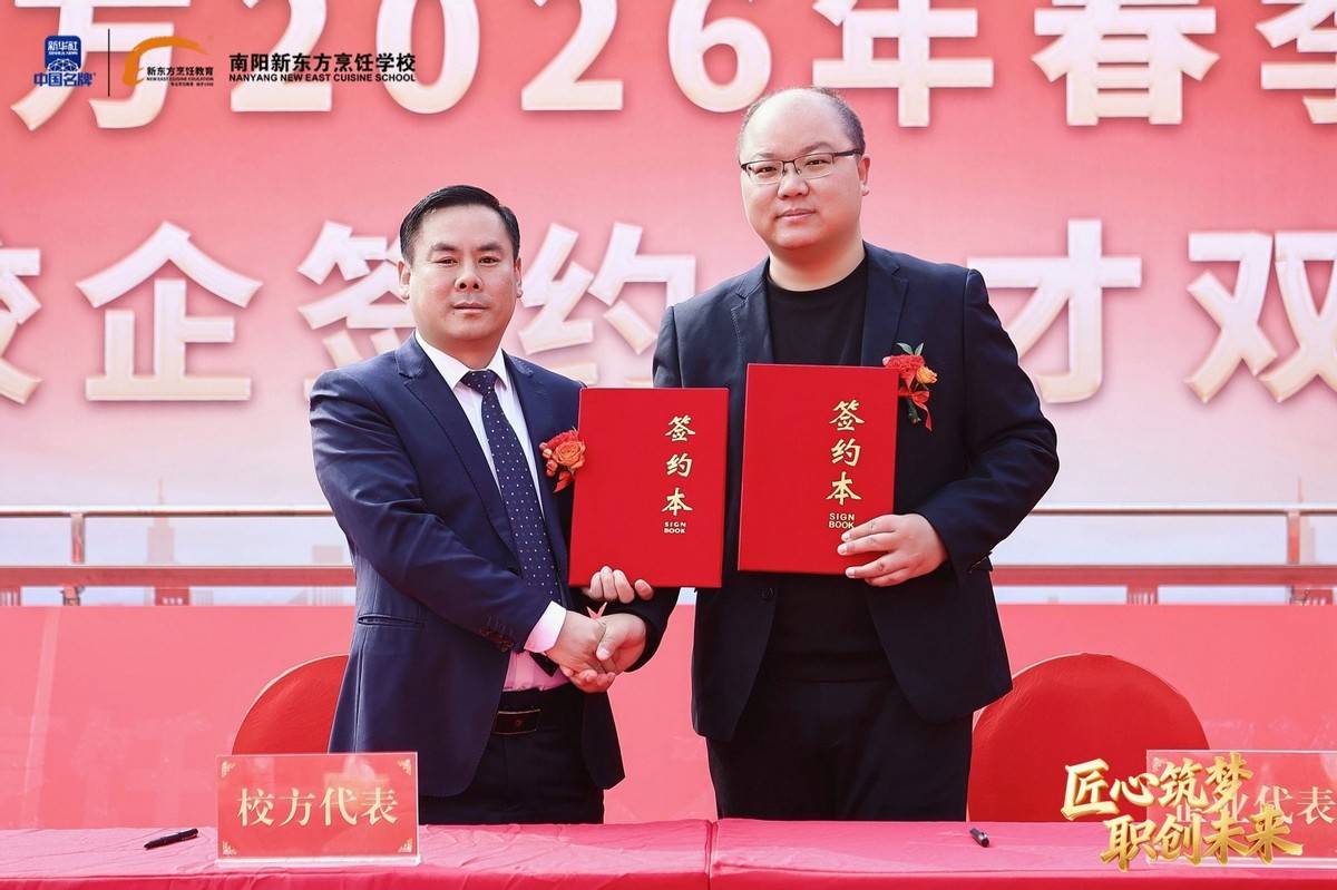 职业教育因产教融合而兴,因校企协同而强。我国产教融合政策历经近40年探索与深化,企业已成为职业教育育人的重要主体。2026年,全国餐饮、酒店、食品等多领域名企纷纷向南阳新东方烹饪学校抛出橄榄枝。仪式上,各深度合作企业代表依次上台签约,校企双方正式建立长期稳定的战略合作关系,将在人才定制培养、实习就业安置、课程联合研发、实训基地共建等方面开展全方位合作。