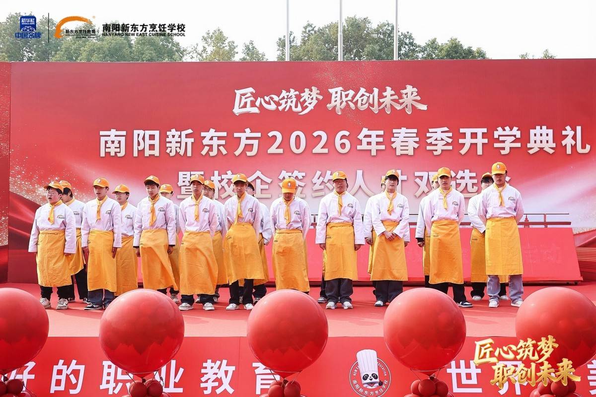 春风启新程,匠心育英才。3月11日,南阳新东方烹饪学校校园内彩旗招展、暖意融融,2026年春季开学典礼暨校企签约人才双选会隆重举行。本次活动以“匠心筑梦,职创未来”为主题,汇聚全校师生与行业名企代表,共话职教发展,共商人才培养,为学子搭建就业桥梁,为行业注入新生力量。