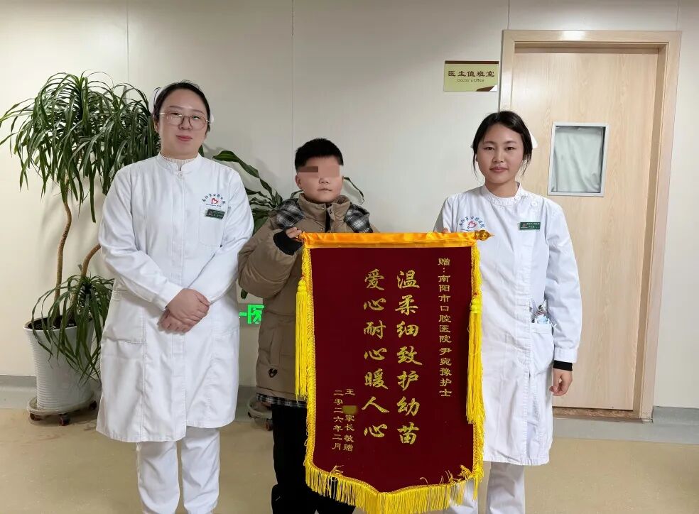 近日,南阳市口腔医院(南阳市第十人民医院)口腔颌面外科二病区收到一面格外暖心的锦旗——家属打破常规,没有将锦旗送给医生,而是专程送到了护士尹宛豫手中,以感谢她在急诊救治中的专业坚守与贴心照料。