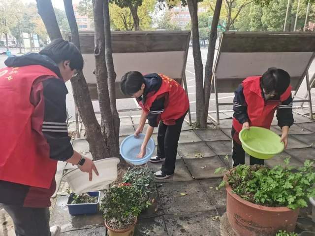 中午12点半,全体成员在校团委的统一安排下,对校园绿化养护区进行集中清理与维护。学生们分工明确、配合默契:清理枯枝落叶、擦拭宣传标牌、为绿植浇水松土……每一项工作都做得细致认真。