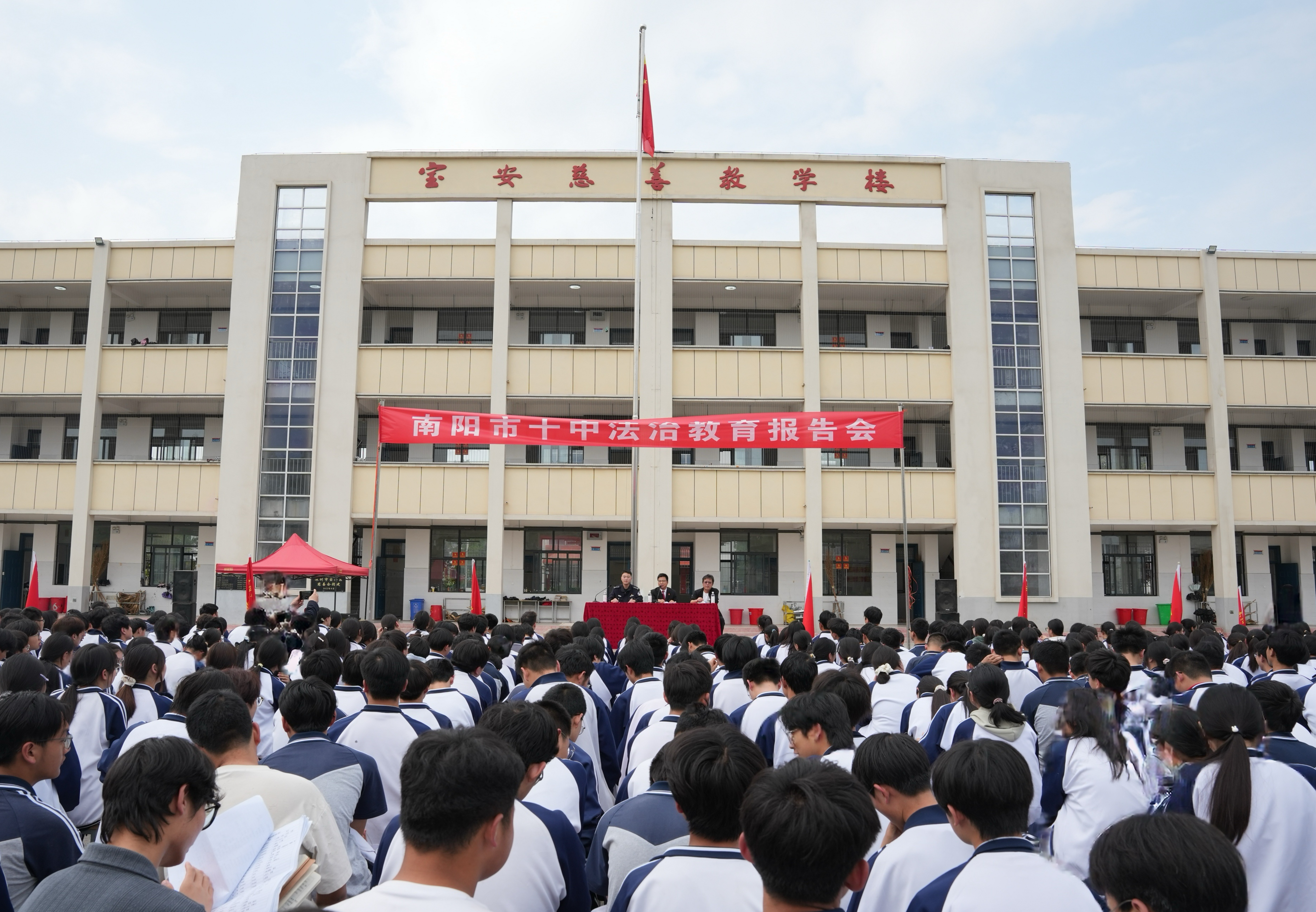 为深入推进青少年法治宣传教育,营造安全、阳光的校园环境,4月16日下午,河南省南阳市宛城区人民法院溧河法庭与瓦店镇派出所、司法所一道走进南阳市第十中学,为学生们带来了一堂生动且实用的法治教育课。