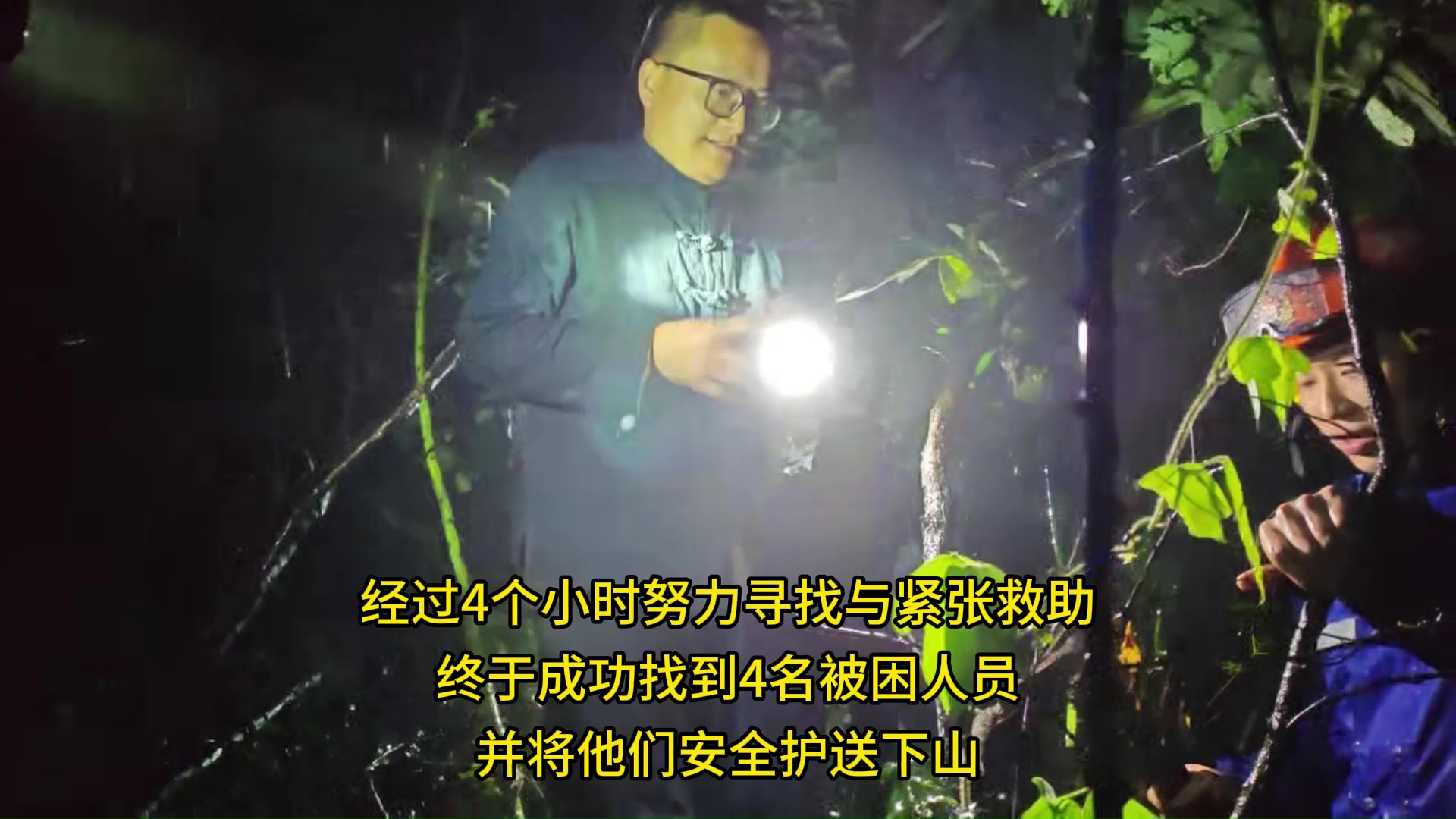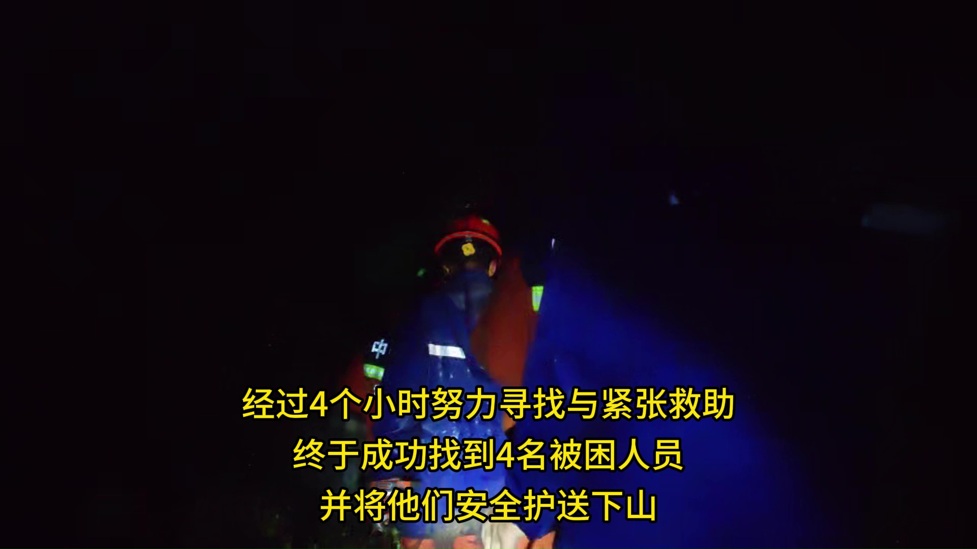 经过4个小时坚持不懈的努力寻找与紧张救助,终于成功找到4名被困人员,并将他们安全护送下山,送回了家。
