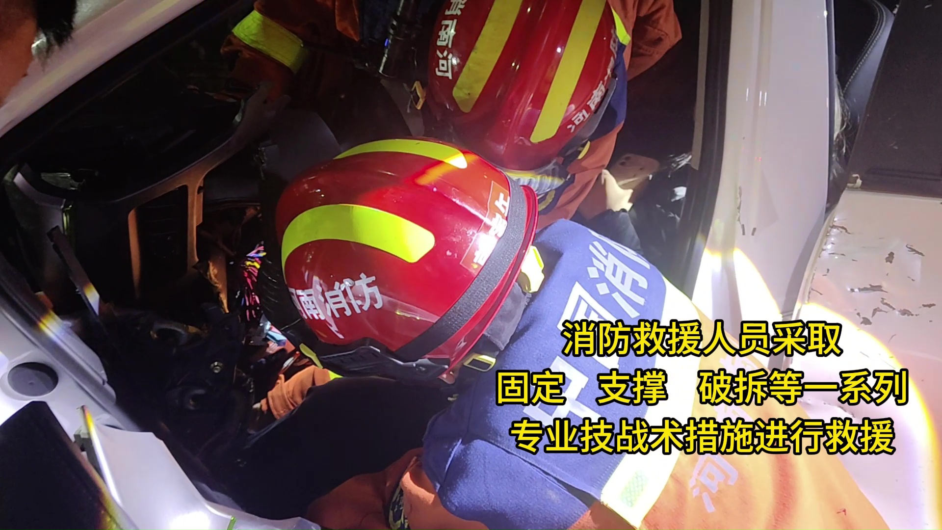 12月18日晚22时06分,邓州市消防救援大队指挥中心接到紧急报警,称在高集镇邓彭路中段,一辆小型新能源轿车撞向桥边护栏,车辆驾驶室有1人被困,情况十分危急。指挥中心立即调派南一环路消防救援站的队员赶赴现场展开救援。