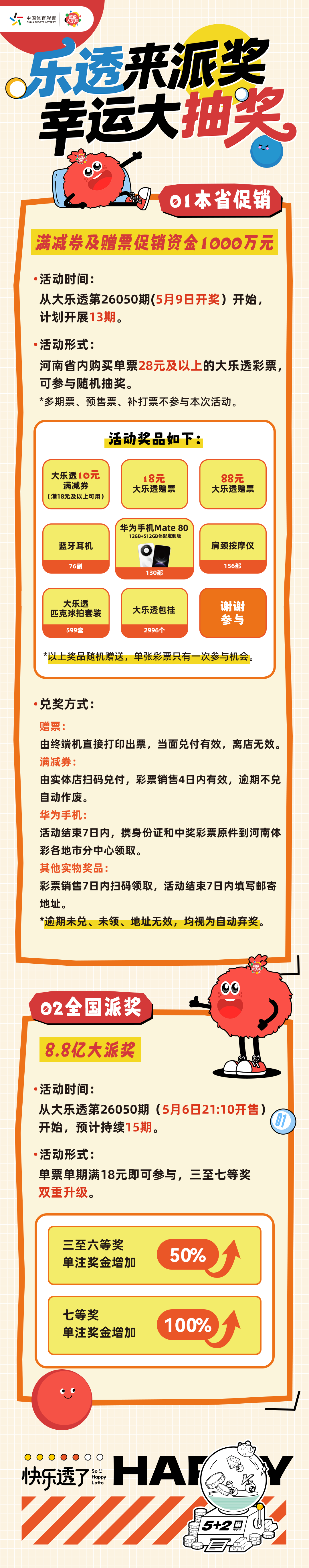 “乐透来派奖,幸运大抽奖”活动即将上线!1000万元满减券和赠票,更有华为手机等你来赢!