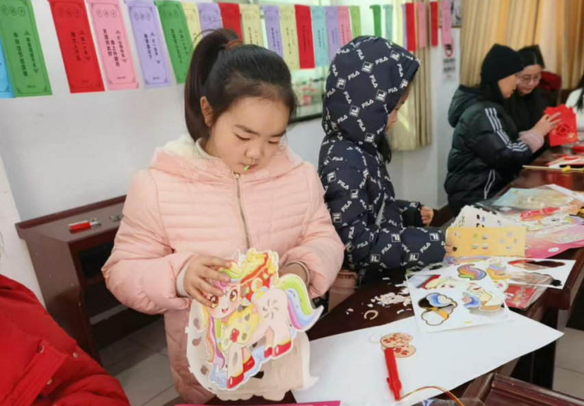 巧手制灯迎佳节,亲子同乐暖时光。“先将彩纸按照折痕拼接成型,再用卡扣固定边角,最后粘贴装饰、挂上流苏,一盏漂亮的灯笼就做好啦!”活动现场,志愿者手把手示范讲解,细致拆解灯笼制作的每一道流程。家长与孩子围坐相伴、分工协作,一张张彩纸在指尖变身一盏盏精巧别致、色彩鲜亮的元宵灯笼。孩子们捧着亲手制作的作品,脸上洋溢着自豪与喜悦。“平时忙于工作,难得有这样的亲子时光,既能让孩子体验动手乐趣,也能让我们在陪伴中重温民俗年味,感受传统文化的温度。”一位参与活动的家长感慨道。