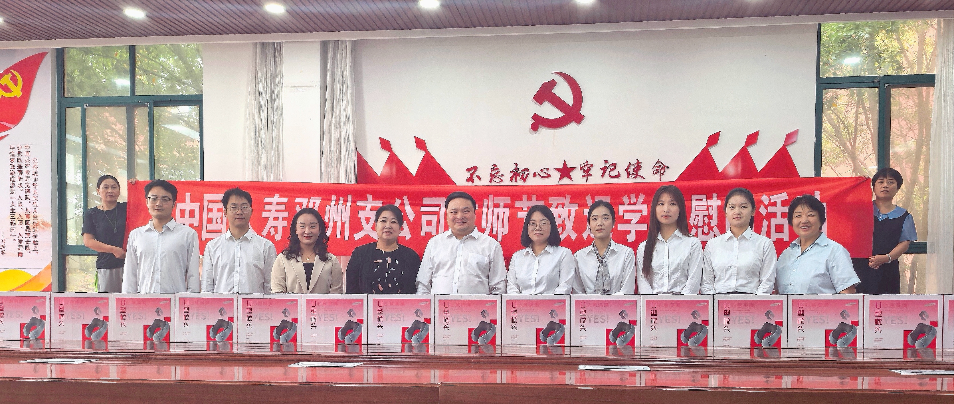 秋高气爽,师恩难忘。在第41个教师节到来之际,为向辛勤工作在教育一线的教职工表达崇高敬意和深切关怀,9月10日上午,中国人寿邓州支公司经理冯超带领干部职工前往邓州市致远学校开展教师节慰问活动,为全体教职工送上节日的诚挚问候。